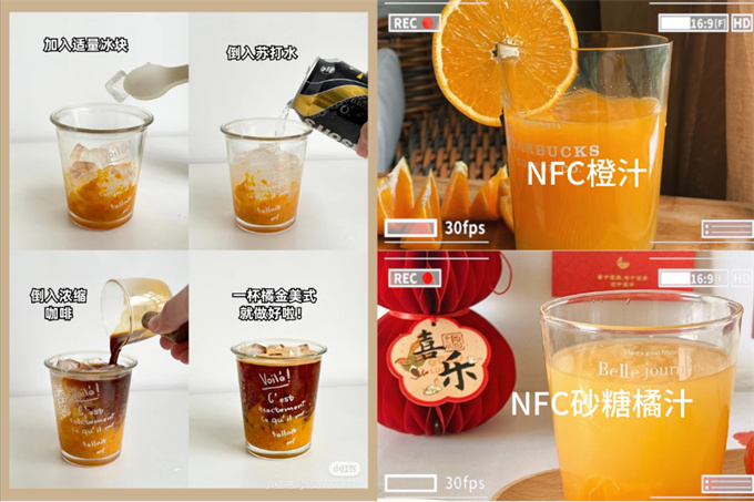 • 「黄金甜感基底」:砂糖橘浆+NFC橙汁1:1复配,甜感自然且成本直降30%,适配「橘气柠檬茶」「橘香气泡水」等轻量化饮品,女性消费者复购率提升35%。